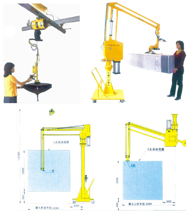 平衡吊采用美国英格索兰气动省力化原理,特别适用于包装、起吊等需省力化的场合。结构可根据场地及工艺的要求设计成立柱式、悬吊式、井字架式等形式。